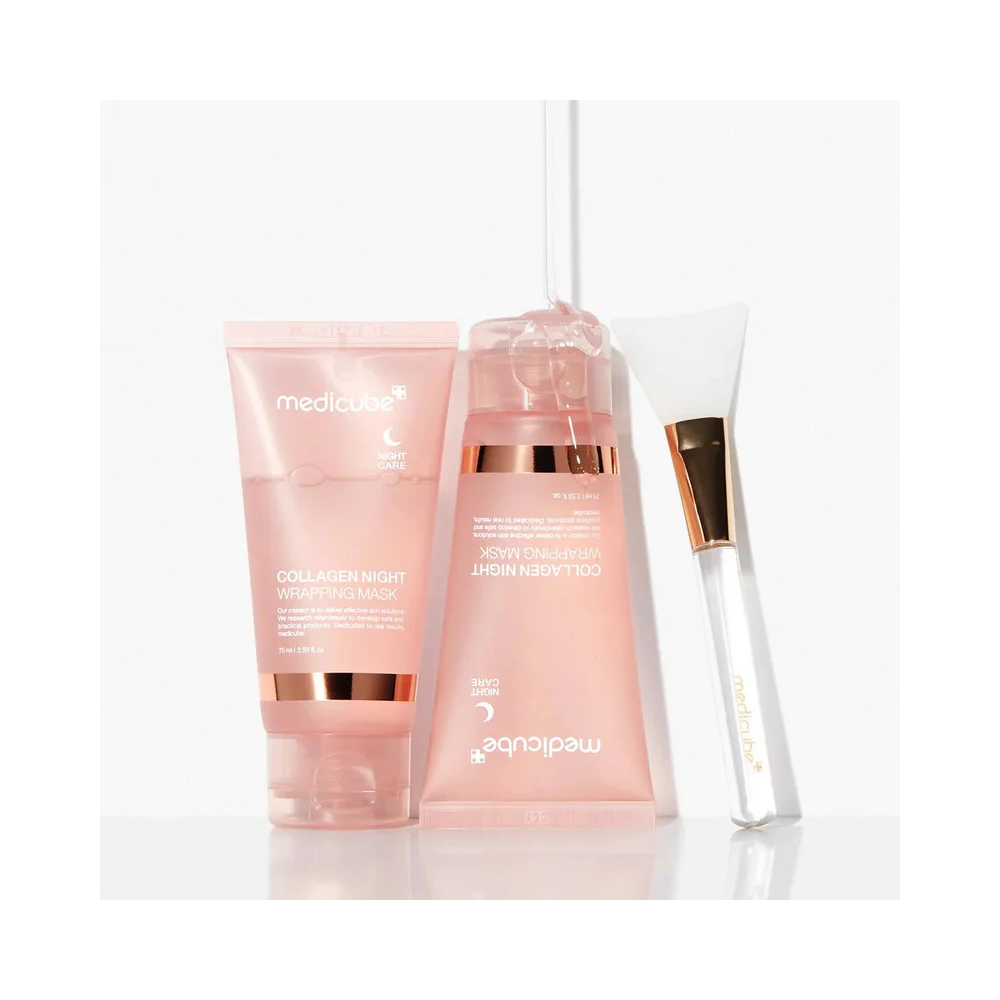Medicube Collagen Night Wrapping Mask is an intensive overnight sleeping mask designed to deeply hydrate, firm, and improve skin elasticity while you sleep. Infused with collagen and moisture-locking ingredients, it forms a breathable wrapping layer that helps seal in active skincare benefits overnight. By morning, skin looks plumper, smoother, and well-rested, with a healthy, bouncy glow.