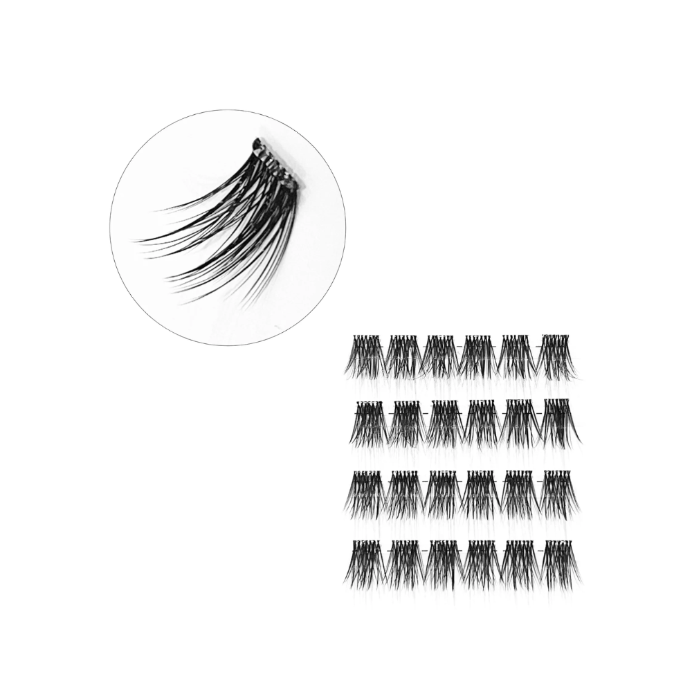 2. Gently squeeze your natural lashes and the cluster between the applicator to lock them together.